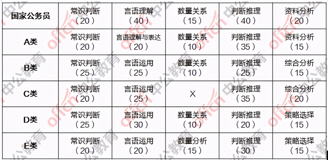 行测和职测从考试内容上看很多相同的地方,但也有差别。行测对于所有参考的考生而言,不论所报什么岗位,考察题型、内容都是一样的;而职测对于报考a、b、c、d、e类的考生考察的题型、内容有明显的区别,各类试卷中虽然有一些相同的题型,但是每一类题目又有自己独特的特点,体现了岗位对于人才基本素养的测试。
