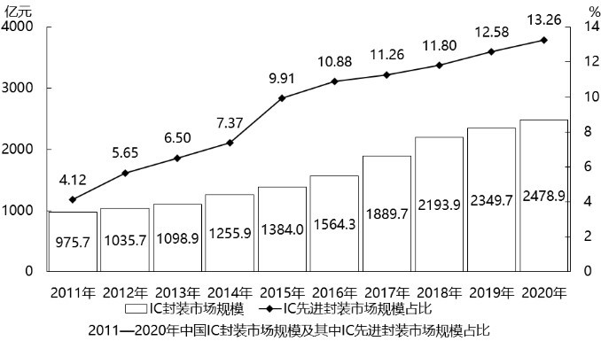 120、已知2020年中国ic封装市场规模同比增长x亿元,ic封装市场中ic先进封装市场规模占比同比增长y个百分点,而2020年往后中国ic封装市场规模及ic先进封装市场规模占比每年都分别同比增长x亿元和y个百分点,则到“十四五”最后一年(2025年),中国ic先进封装市场规模将达到多少亿元?