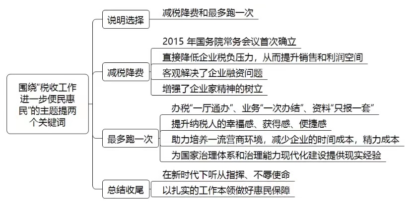 1.税收在国家治理中发挥着基础性、支柱性和保障性作用,为更好地发挥税收服务经济发展大局的作用,打造优惠、便民、便捷税收格局,各地税务局近年来不断推动税务改革工作走深走实。请你围绕“税收工作进一步便民惠民”的主题提两个关键词,并展开具体论述。