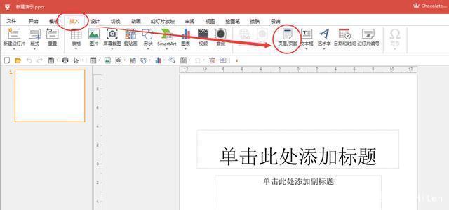 首先用极速演示打开ppt文档,点击菜单栏“插入”中的“页眉页脚”