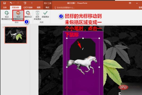 因此我们需要手动将这块区域包括进来,首先点击菜单项【标志要删除的区域】,将鼠标的光标移动到未包括进来的区域,再在里面点击一下。