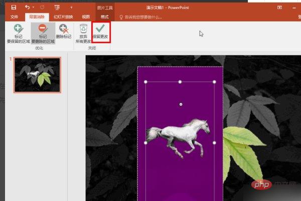 现在,需要标记的背景就全部被高亮显示了。此时,我们点击菜单【保存更改】,就会将标记出来的背景全部去掉了。