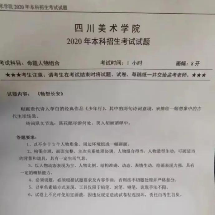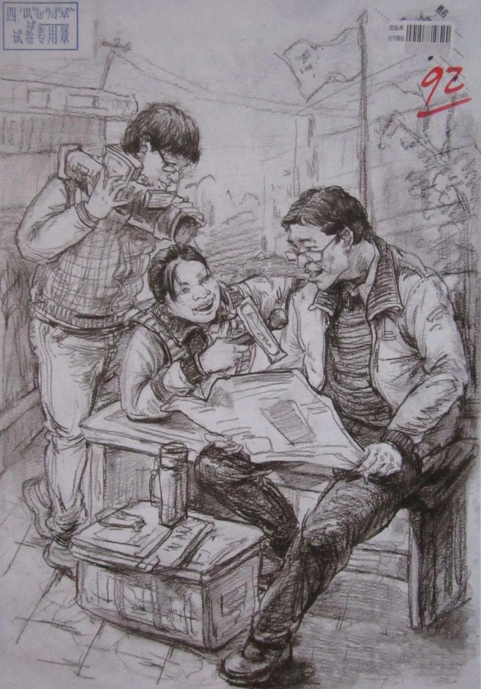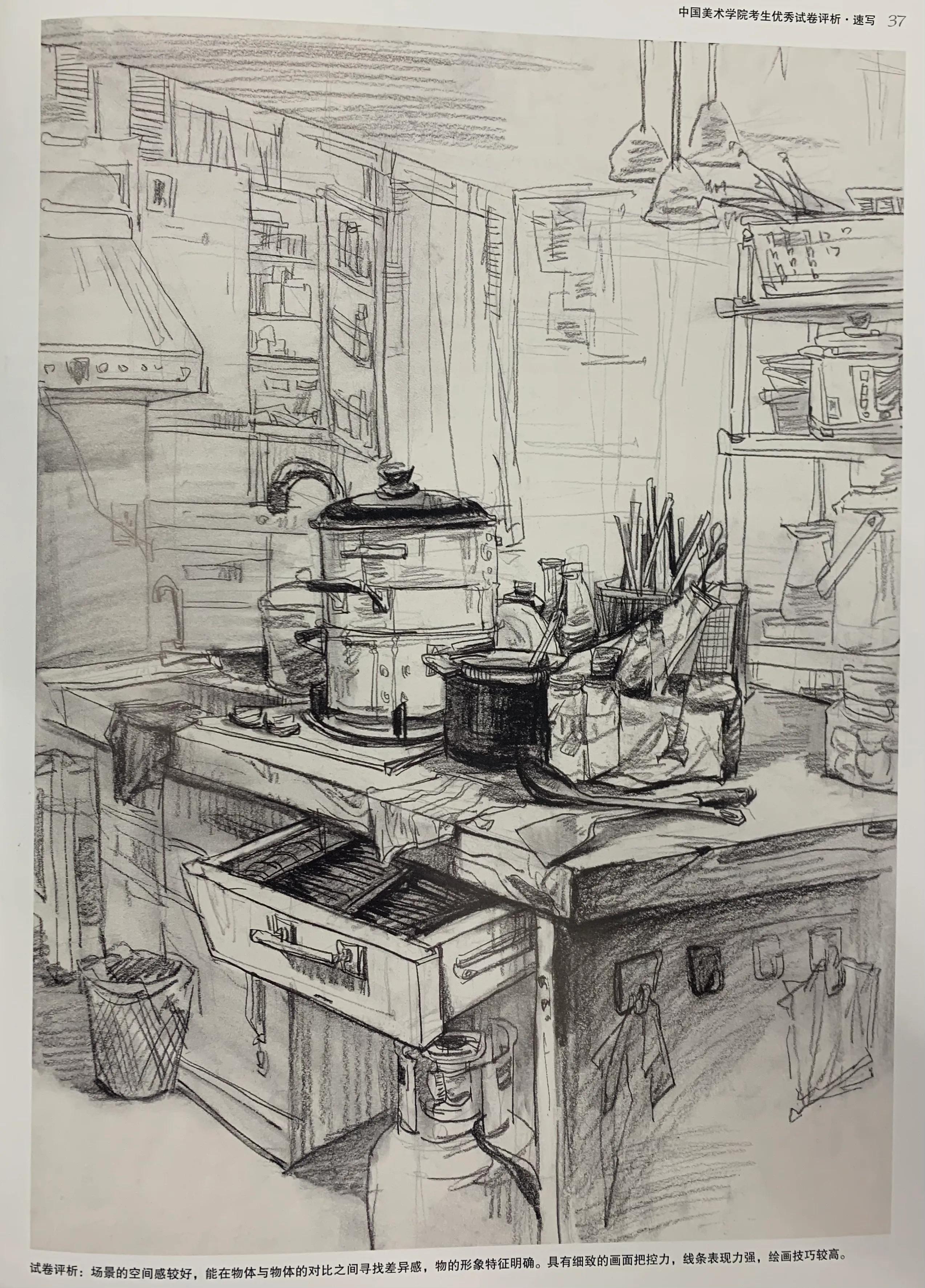 另外,我个人认为以后的考题——命题创作(综合绘画)是个大方向,不限手法、不限材料去完成一幅创作,充分发挥学生的想象力和基础能力,这个央美走的比较靠前,同学们可以多关注。还有就是平时多积累素材,多画一些速写稿子、多在网上收集图片素材。